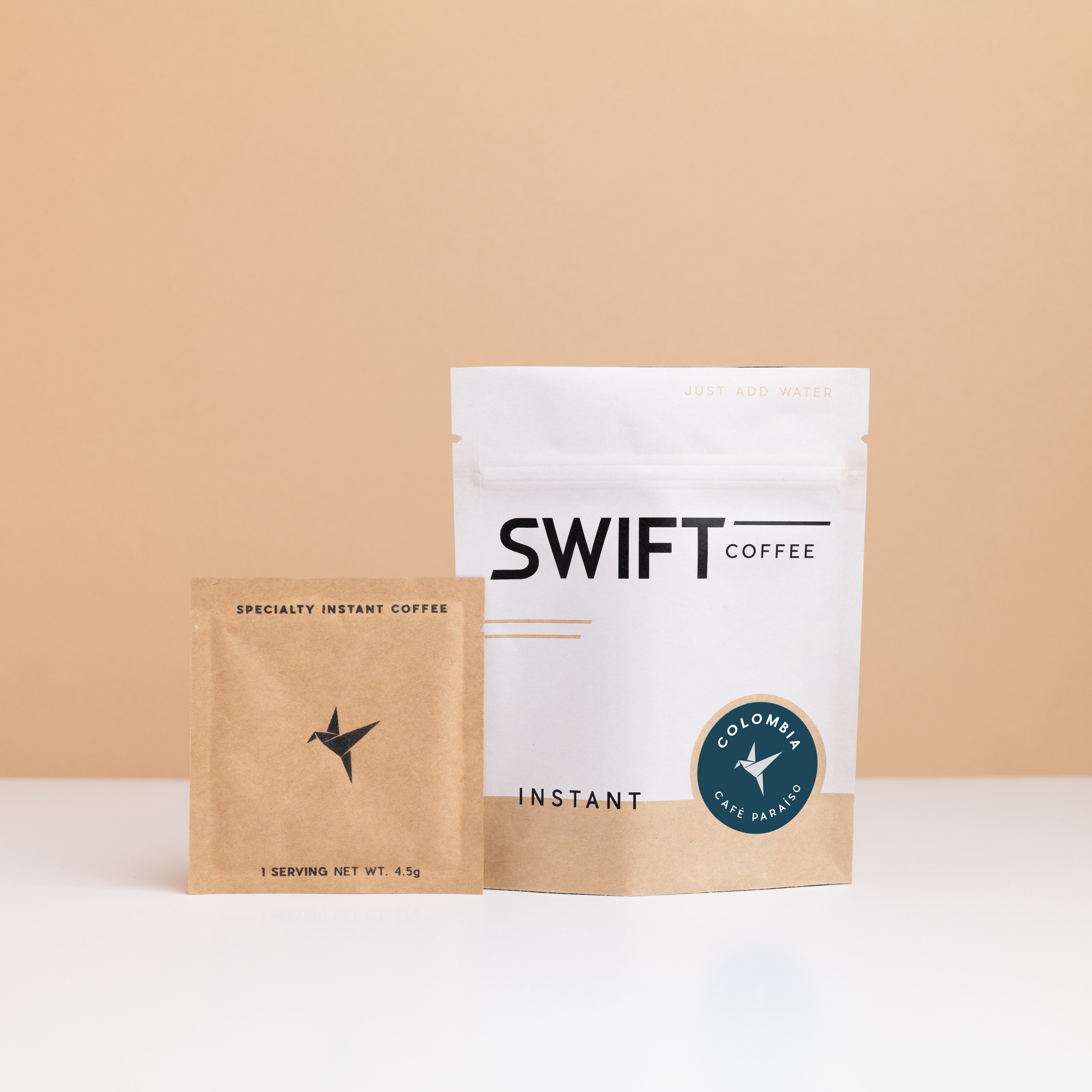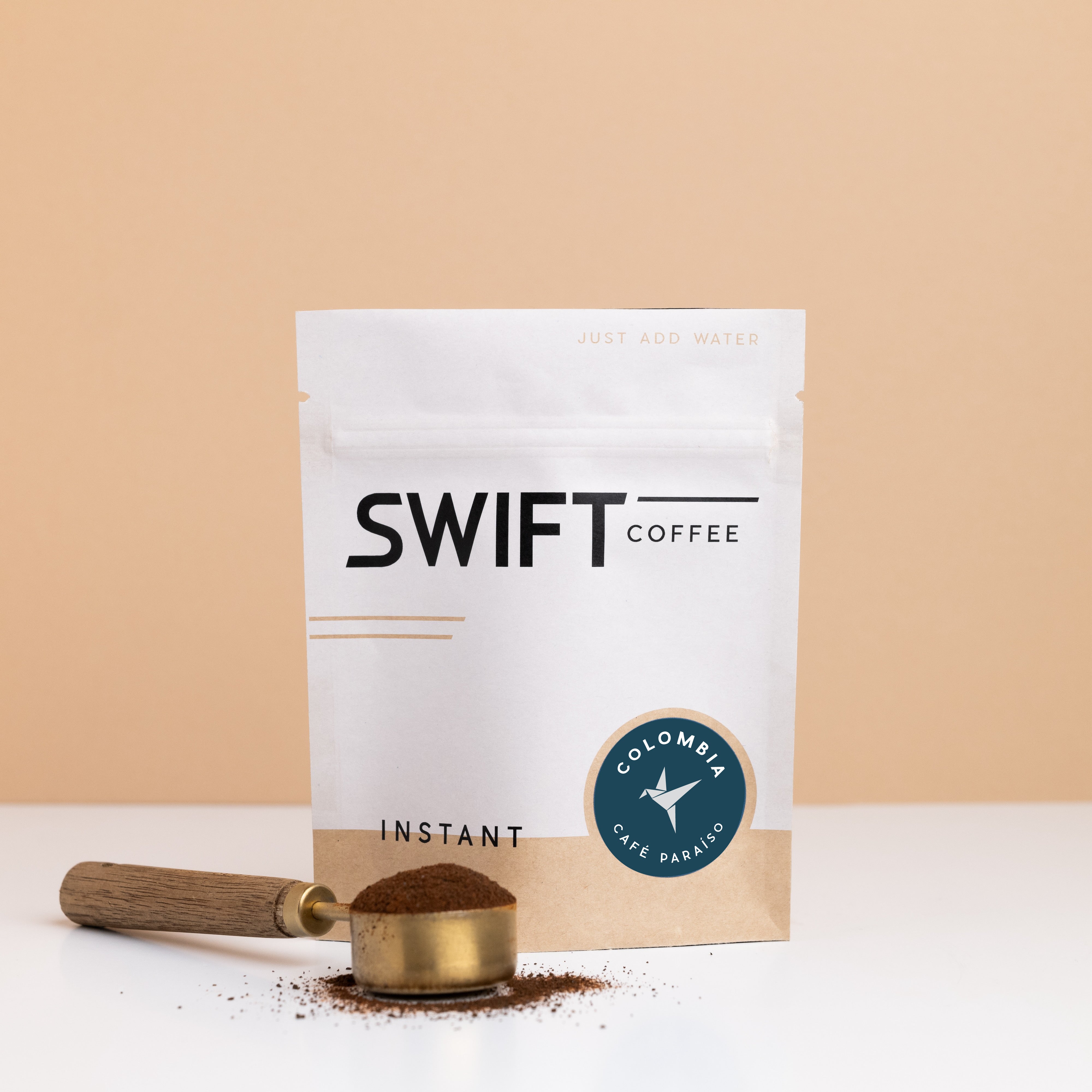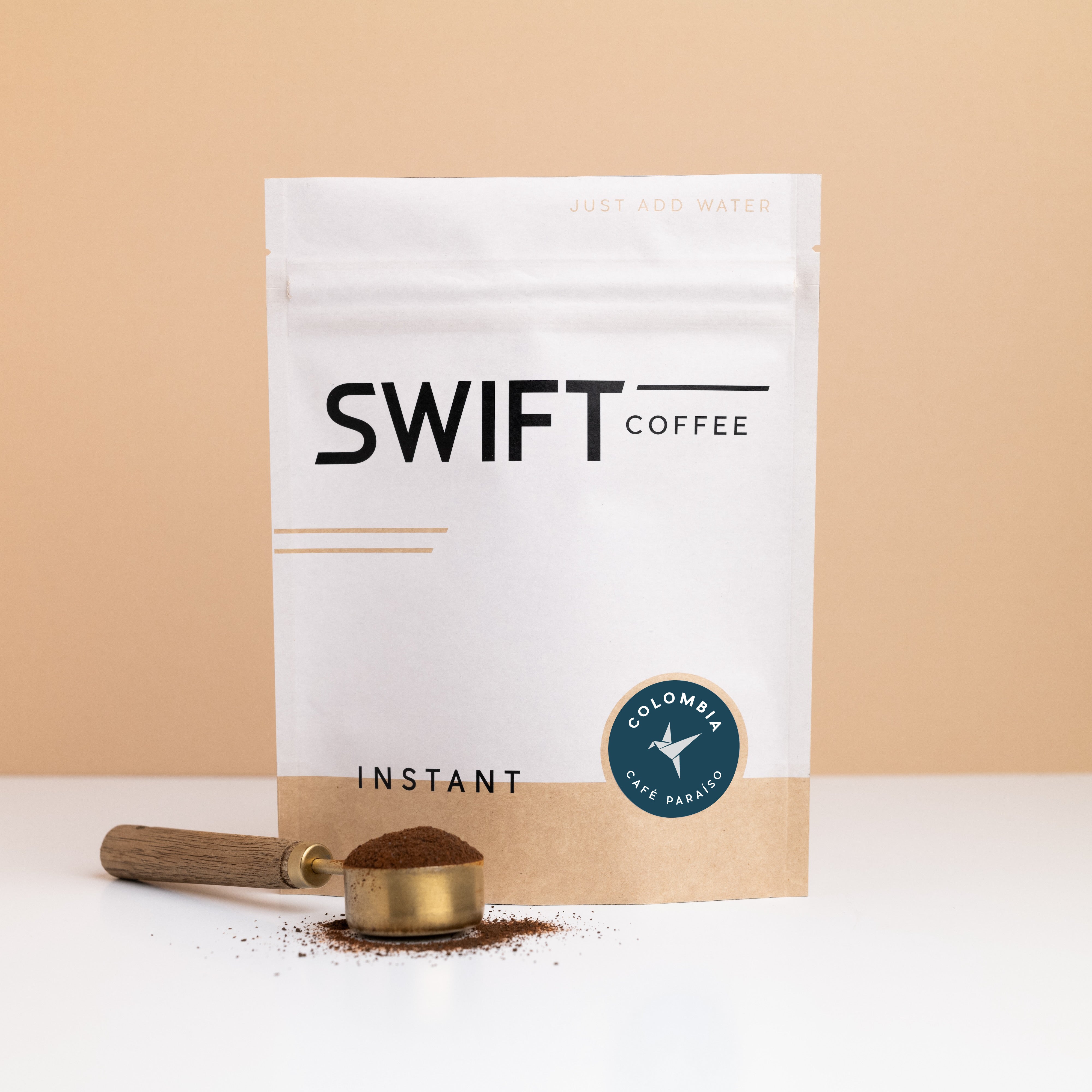 The bulk option is our most economical way to enjoy Swift instant every day! Skip the extra packaging and gain flexibility in how much coffee you'd like to make at a time. Choose your pack size: up to 25 cups (113g) or up to 50 cups (225g).